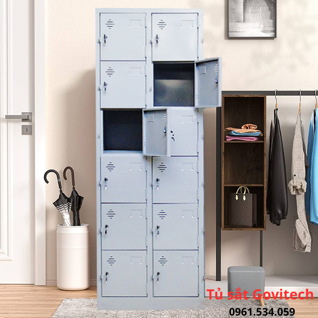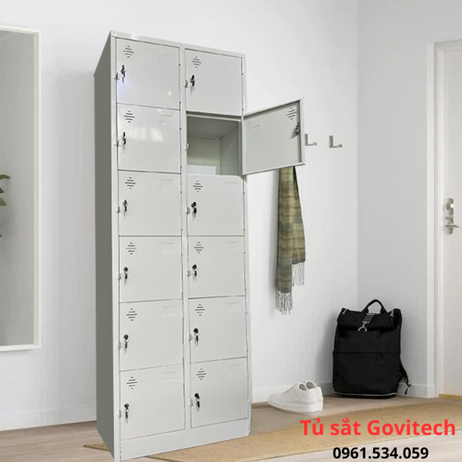 Go Vitech – sản xuất và phân phối mẫu tủ sắt locker 12 ngăn 2 cột chất lượng cao, giá tốt nhất trên khắp cả nước. Một trong những mẫu tủ đang được sử dụng nhiều trong các shop thời trang, trường học, văn phòng, vv bởi thiết kế nhỏ gọn, đẹp.