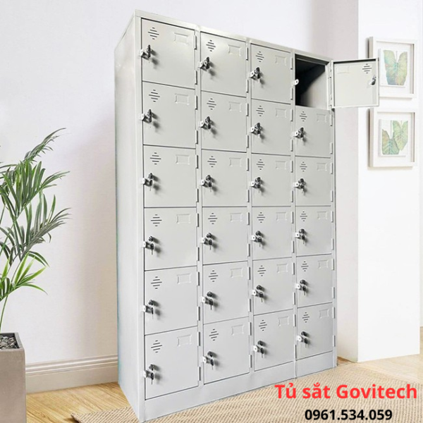 Tủ sắt locker 24 ngăn sản phẩm tủ sắt nhiều ngăn ứng dụng phổ biến tại nơi đông người đặc biệt tại khu công nghiệp, nhà xưởng, văn phòng, trung tâm thương mại. Công dụng của tủ sắt 24 ngăn dùng để bảo quản các loại đồ đạc cá nhân. Giúp người dùng an tâm hơn khi tham gia hoạt động sản xuất, vui chơi mua sắm tại.