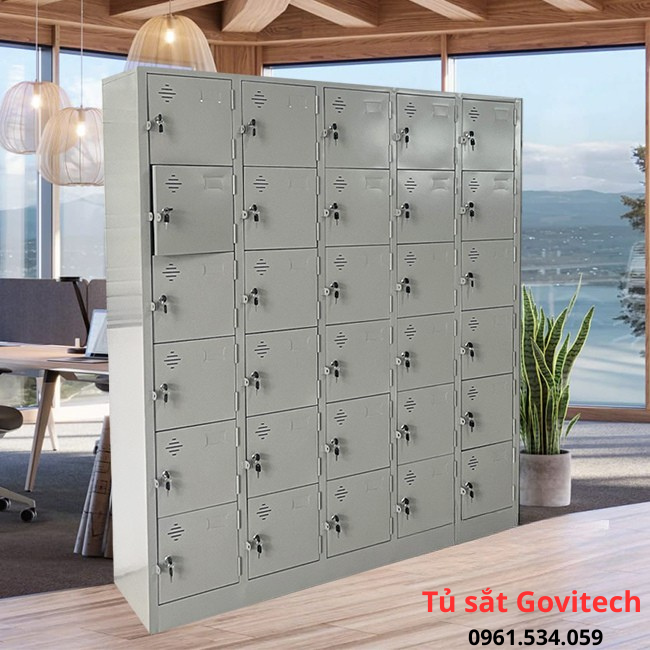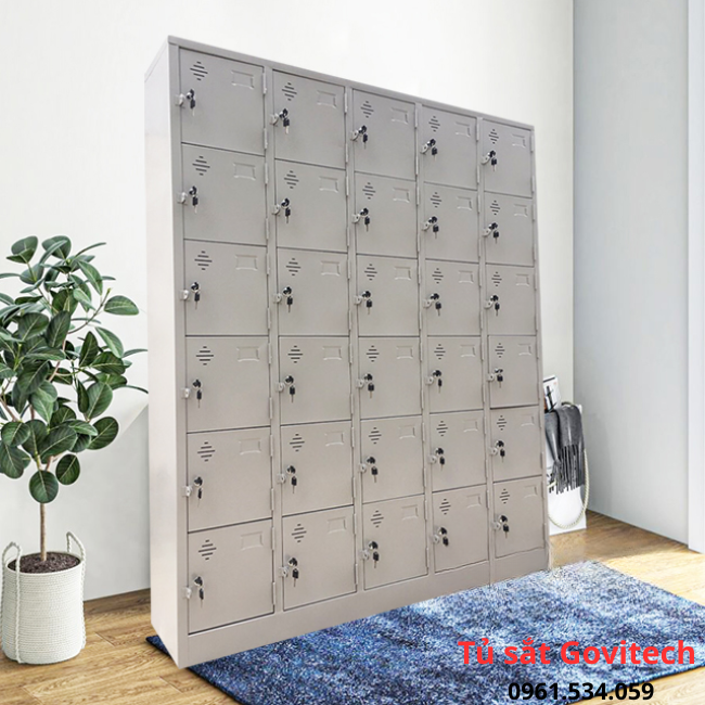Tủ sắt locker 30 ngăn thuộc dòng sản phẩm tủ locker để đồ nhiều ngăn của Go Vitech . Tủ sắt nguyên khối vững chắc, sơn phun tĩnh điện vừa đẹp vừa bền màu, chống han gỉ dưới mọi môi trường, và quan trọng là số lượng ô nhiều, sử dụng hiệu quả khi có nhu cầu lớn lại tiết kiệm chi phí. Ví dụ: Tủ đựng đồ cho công nhân ở các khu công nghiệp là lựa chọn hoàn hảo nhất.Tạo điều kiện thuận lợi cho việc lưu trữ đồ dùng cá nhân của từng người. Điều này giúp khách hàng có khả năng tổ chức và bảo quản số lượng lớn đồ dùng cá nhân của họ trong không gian tập thể.