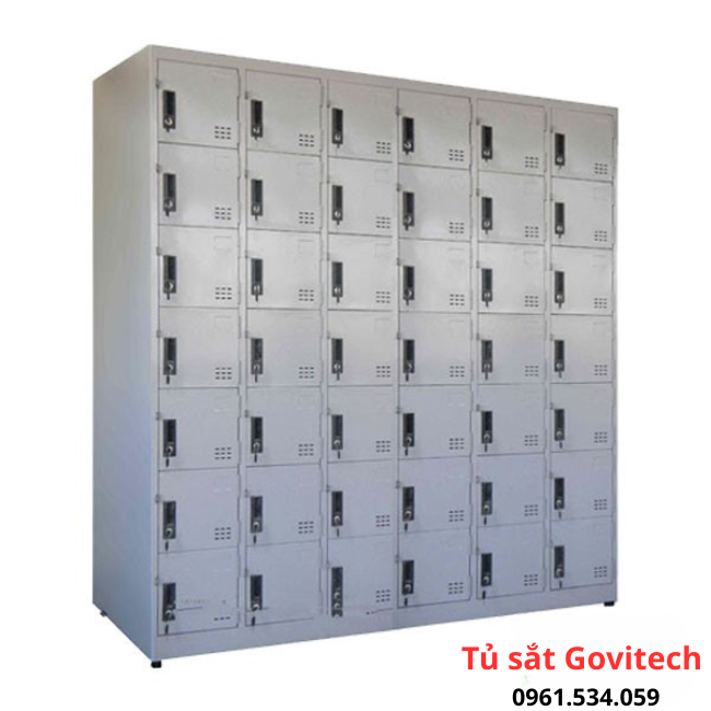Tủ sắt locker 42 ngăn hay còn gọi là tủ sắt 42 ngăn, tủ sắt để đồ 42 ngăn thuộc dòng tủ sắt locker nhiều ngăn thiết kế chuyên để đồ cá nhân, có khóa locker an toàn cho từng ngăn riêng biệt. Đây là một trong những mẫu tủ sắt được sử dụng mua nhiều trong các khu công nghiệp, để đồ công nhân viên bởi số lượng ngăn ô nhiều phù hợp cho số lượng lớn công nhân viên, tiết kiệm không gian.