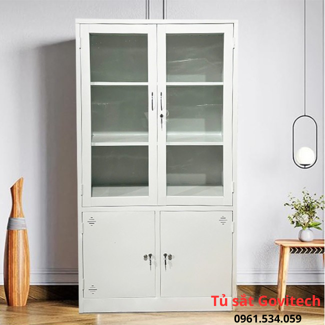 – Tủ sắt để hồ sơ hàn liền khối gồm 2 khoang